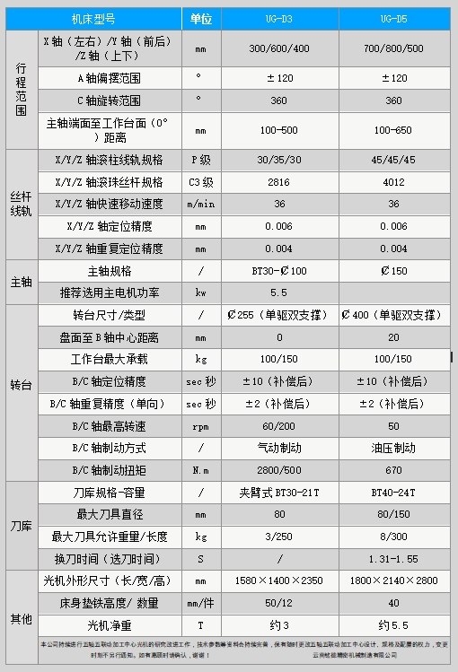 機(jī)型:UG-D3、UG-D5(龍門式五軸系列)